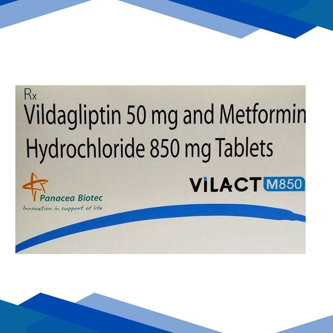VILACT M 850MG TABLET is used to manage type 2 diabetes (non-insulin-dependent diabetes mellitus) in adult patients whose diabetes cannot be controlled by diet and exercise alone and/or with other medicines used to manage diabetes (insulin or sulphonylureas such as glimepiride and glipizide). It is a combination of Metformin and Vildagliptin which belongs to a group of medicines called Antidiabetic agents.