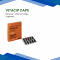 Vitacip Softgels  Capsule is a nutraceutical that is useful in overall body immunity and strength. It contains Ginseng Root Extract, Multivitamins and Multiminerals as active ingredients that rejuvenate the body.Ginseng possesses anti-fatigue, anti-stress, and CNS stimulant properties, and increases both physical and mental efficiency. It also builds energy, boosts immunity, improves blood circulation, and revitalizes and aids recovery after illness.
