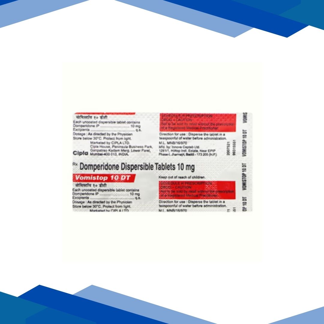 Vomistop DT 10 mg Tablet 10’s is used for relief from nausea, vomiting (including motion-sickness), indigestion and delayed gastric emptying by boosting gastrointestinal motility and blocking nausea signals. For more details kindly click on Medicine Salts below: