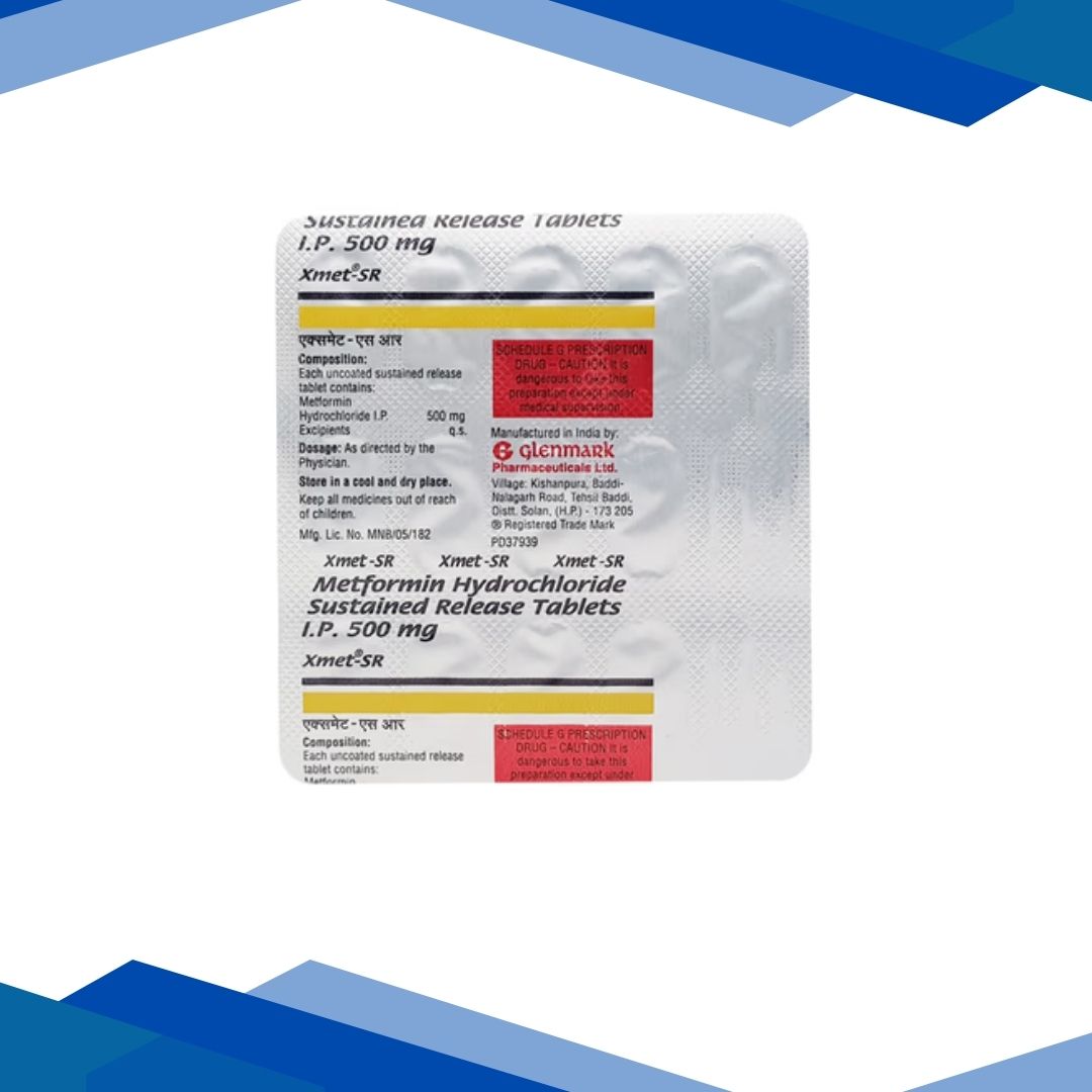 Xmet SR 500mg Tablet 15’s is an antidiabetic medicine used for the management of Type 2 Diabetes Mellitus. It contains the active pharmaceutical ingredient Metformin in sustained-release form, which helps control blood sugar levels by decreasing glucose production in the liver and improving insulin sensitivity in the body. For more details kindly click on Medicines Salts below: