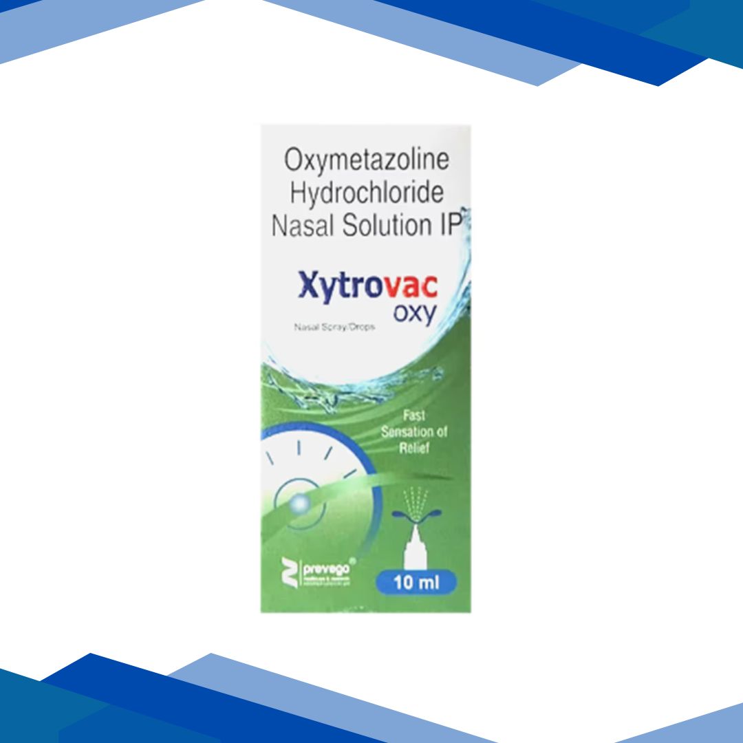 XYTROVAC OXY NASAL SPRAY/ DROPS is designed for instant relief from nasal congestion. With its fast-acting formula, it helps clear blocked nose within minutes. It works by narrowing the blood vessels in the nose area, reducing the swelling and congestion.